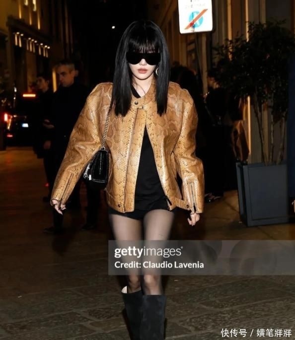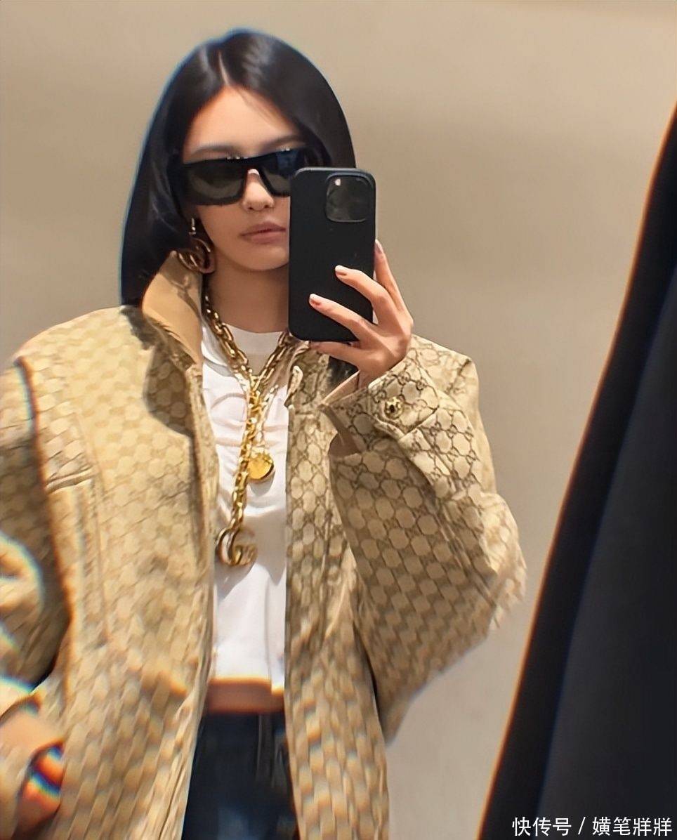 她身着Gucci 2026早秋系列蛇纹压花皮质夹克,叠戴多圈粗金链与巨型金属耳饰,在经典框架中注入鲜活张力,成功打破传统老钱风的沉静边界,网友笑称“东北豪门千金气质苏醒”。